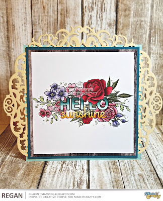 Hi there! It's been a busy week with Valentine's Day in the middle of it all, but I still found some time to color up this gorgeous new digi from Make It Crafty! I don't usually color flowers so this one was a bit different for me, but I loved the challenge! Zoe has a whole selection of gorgeous new floral images in the shop! She has all the elements available separately so you can build your own or you can choose from several gorgeous pre-made options like the one I've used here! Hello Flower Arrangement is colored with Copics and popped onto a relatively CAS (for me!) card. The only dies I've used are two from La-La Land crafts: Filigree Elements Border and Filigree Border. The fun part was deciding which awesome chipboard word to pair with it! I could have used "Beautiful" or "Gorgeous" but I finally settled on "Sunshine"!