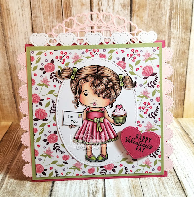 The first was a Valentine's Day card for my son's teacher. I colored Heart Cupcake Marci following the free class that was offered over at Kit and Clowder. I thought she would be perfect!